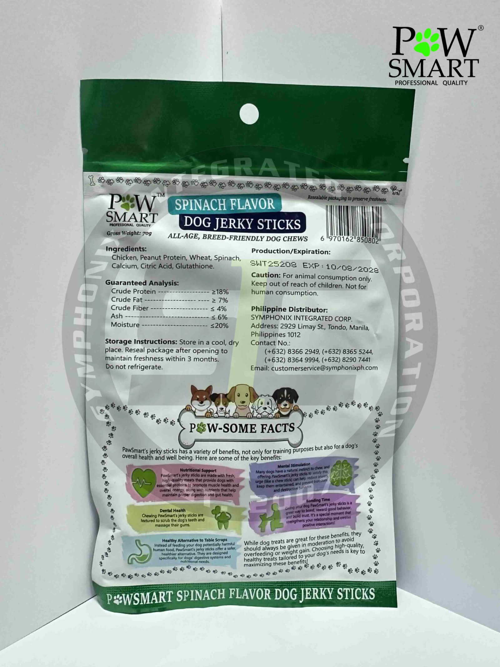Give your dog a fresh and healthy treat — choose PawSmart Spinach Flavor Dog Jerky Sticks today!